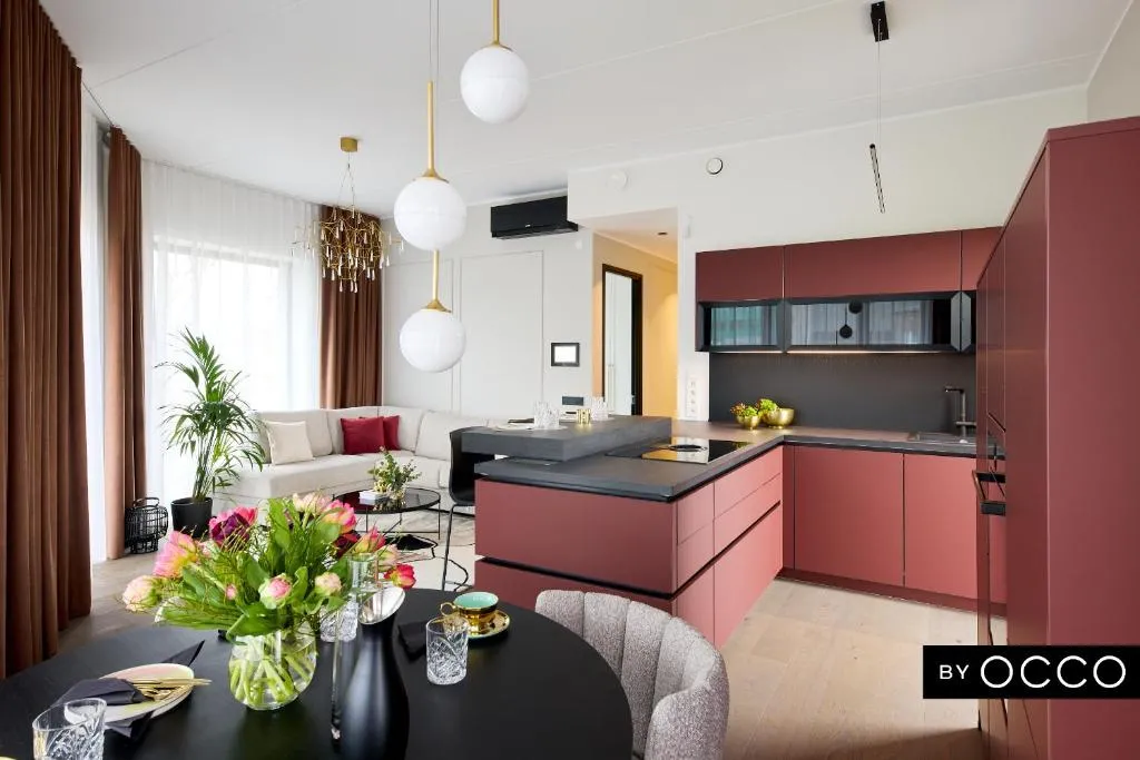 I really liked the interesting interior design of the apartment.Good location in the city center, everything you need nearby.The spacious, living room has room for the company, but the bedrooms are sufficiently separated and there is also privacy.